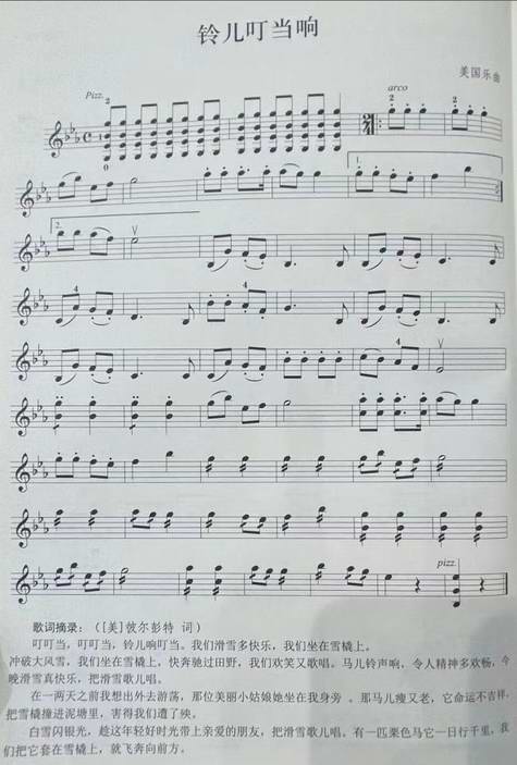 铃儿叮当响小提琴谱,三个版本来源:网络 上传:小提琴网 更新时间 :2025-09-22 版本一 版本二 版本三 《铃儿响叮当》是一首曲调流畅、情绪欢快的美国歌曲。生动的歌词描绘了一群孩子冒着大风雪,坐在马拉的雪橇上,他们的欢声笑语伴着清脆的马铃声回响在田野——表现了孩子热情奔放的性格,抒发了热爱美好生活的真挚情感。 小提琴谱共3页 说明:在小提琴谱图片上点击鼠标右键,图片另存为,即可将小提琴谱保存到本地! |